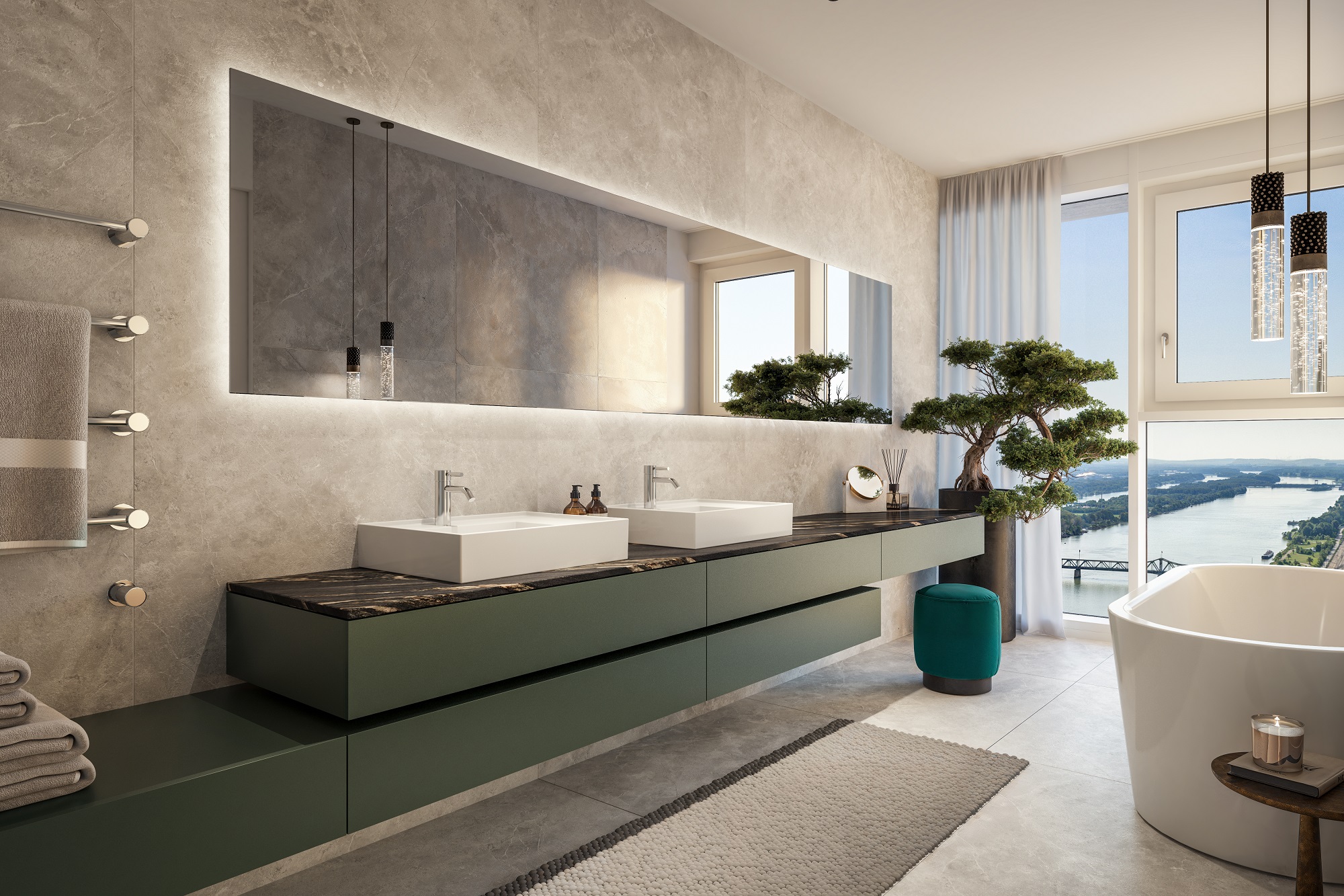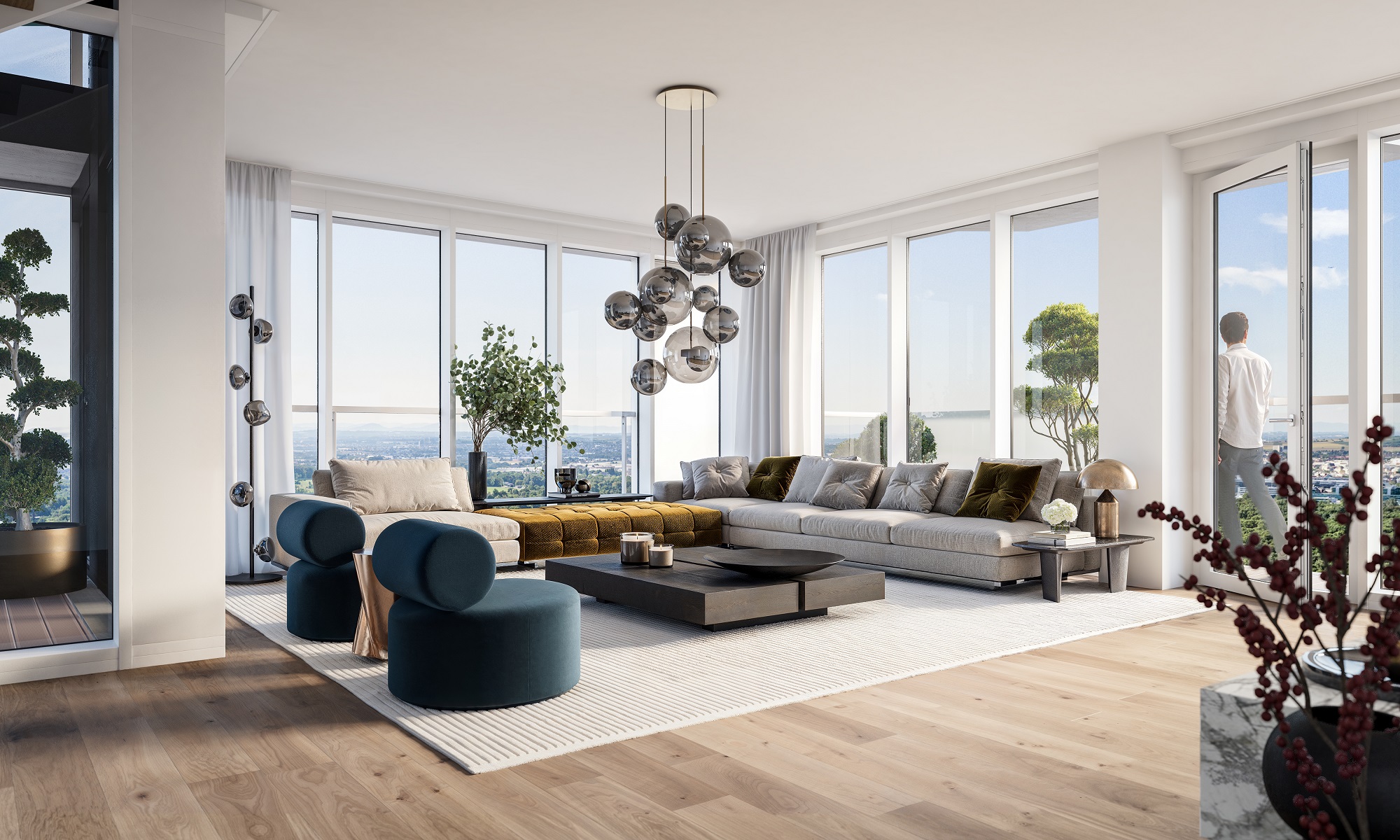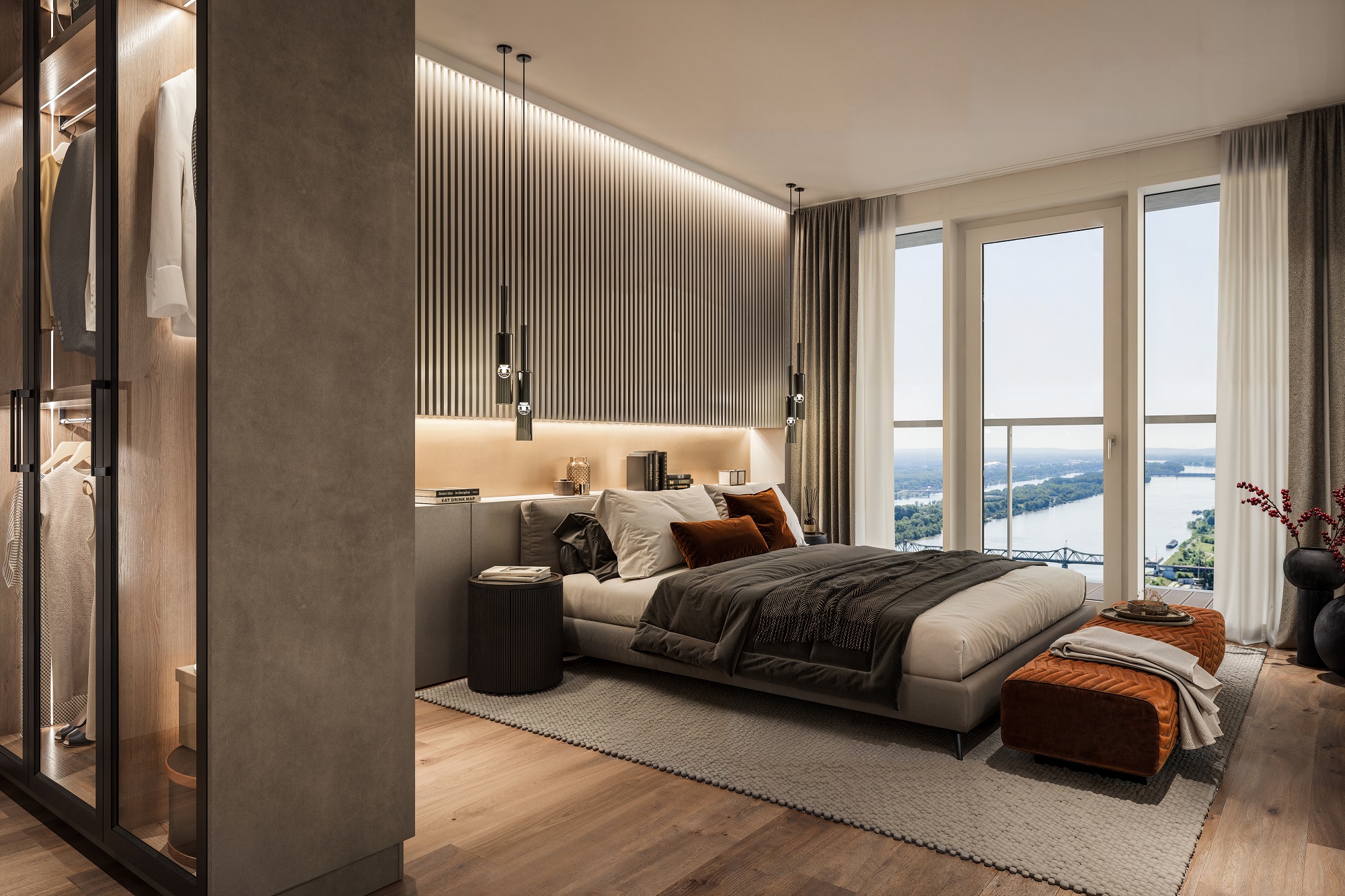 Der MARINA TOWER ist per se schon ein Stück Himmel: Am Handelskai entlang des Donauufers ist das gemeinsame Projekt von der BUWOG und den IES Immobilien nach und nach in die Höhe gewachsen und bietet nach der Fertigstellung ein hochwertiges Wohnerlebnis in allen 511 freifinanzierten Eigentumswohnungen. Besonderes Highlight sind neben den zahlreichen Serviceleistungen, die den Bewohnern zur Verfügung stehen, die insgesamt 6 Penthouse-Wohnungen in den obersten Stockwerken des Wohnturms: Jedes der Penthouses im MARINA TOWER ist ein Unikat. Sie charakterisieren sich über eine eigene Ausstattungslinie und eine ganz besondere Ausrichtung auf die facettenreiche Kulisse der Stadt.