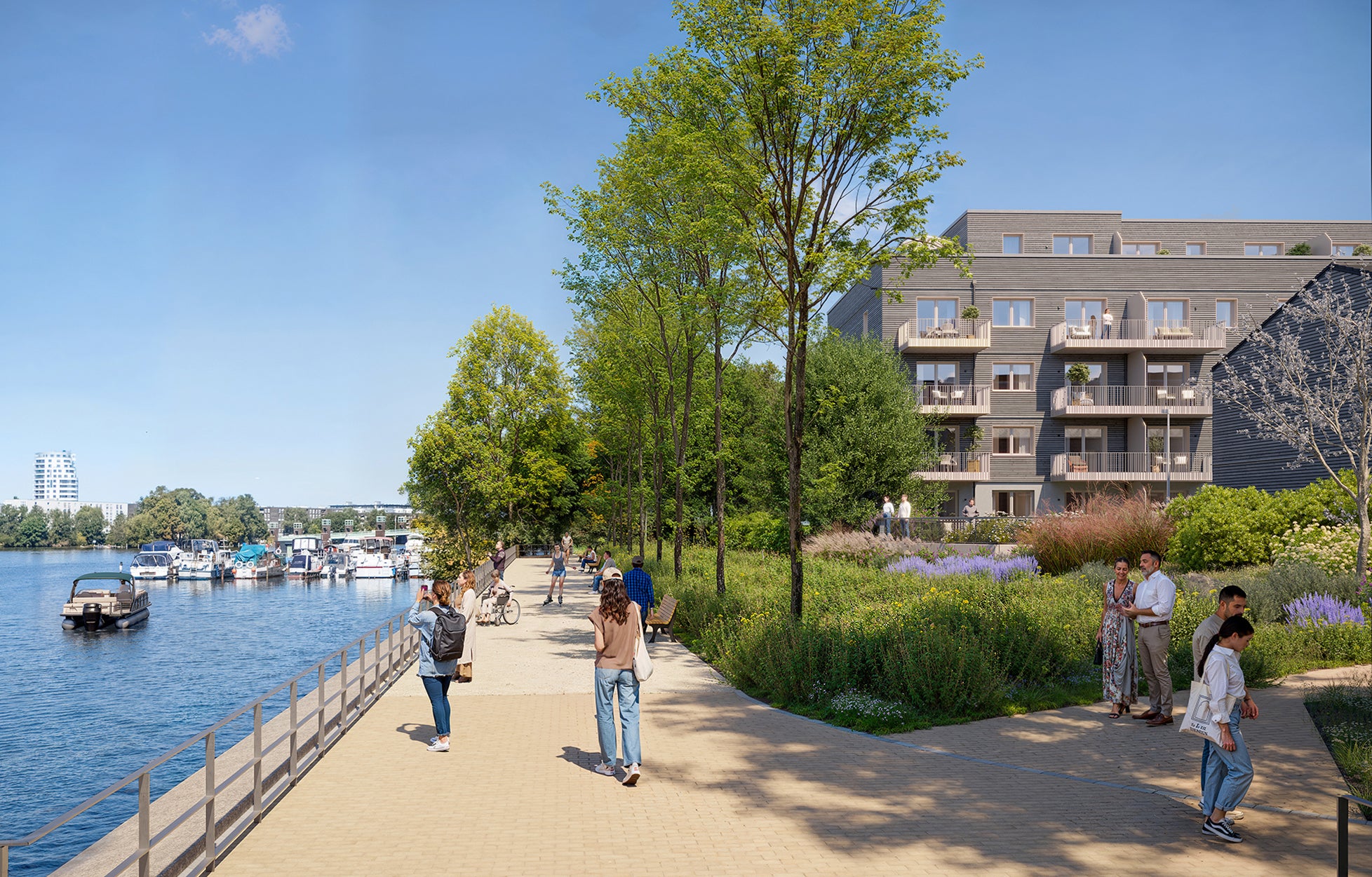 Living on the Havel with a view of the island of Eiswerder. All apartments in the BUWOG HAVELLICHTER ensemble have a balcony, terrace or roof terrace.