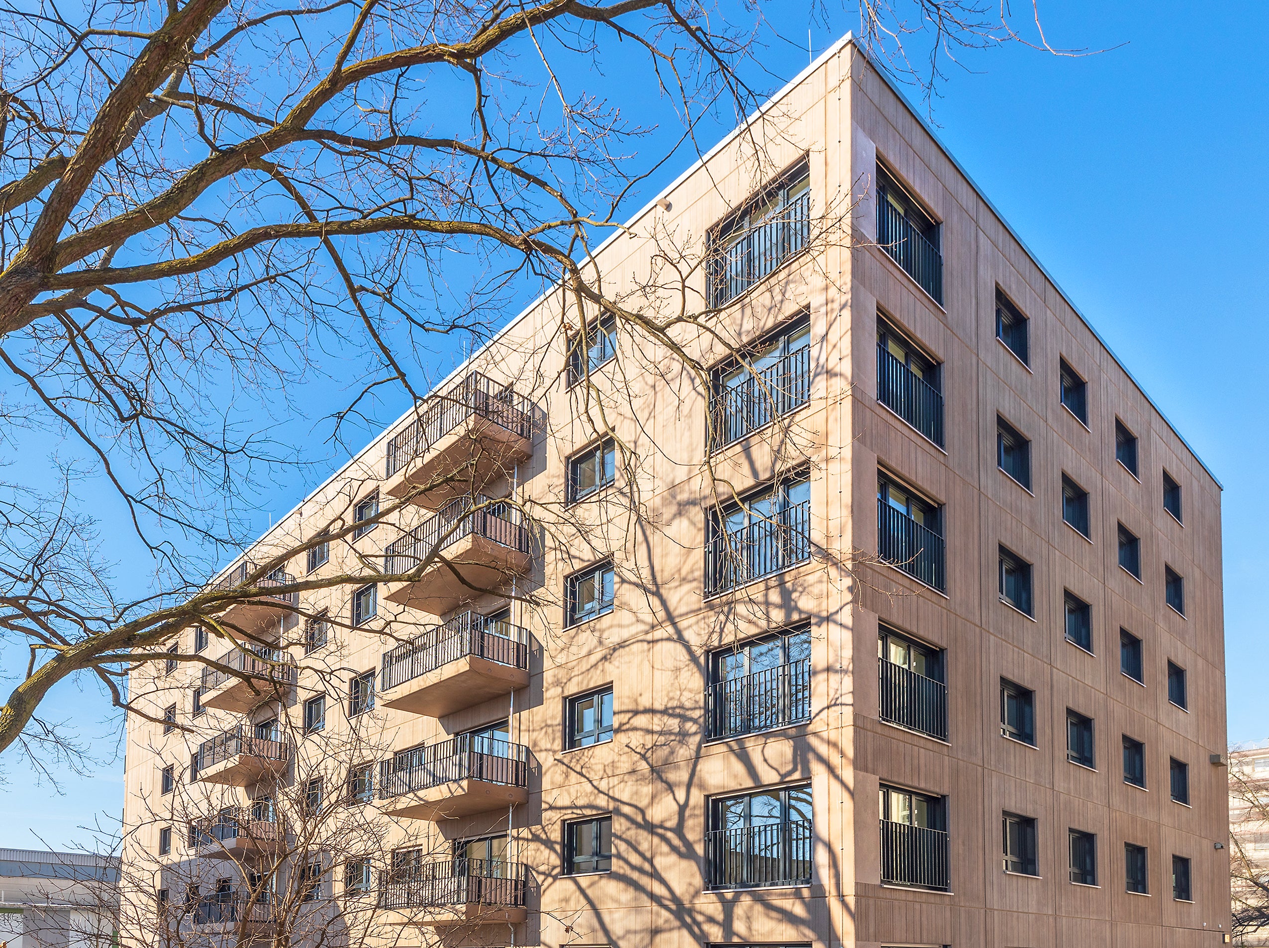 At Harzer Straße 40 in Berlin-Neukölln, BUWOG built a total of 48 rent-controlled apartments for people with a housing subsidy certificate (WBS) in a separate construction phase at the historic Geyer Works. The apartment building at Harzer Straße 40 was constructed as a modular housing project by the company HABAU. The rent-controlled apartments (WBS 100) with 2, 3, and 4 rooms offer versatile, socially oriented living space for couples, single parents, and families. All subsidized apartments have a balcony or terrace. After completion in 2025, this socially oriented BUWOG project was sold to the municipal housing association HOWOGE, which has taken over the rental and management of the property and holds it in its portfolio.
