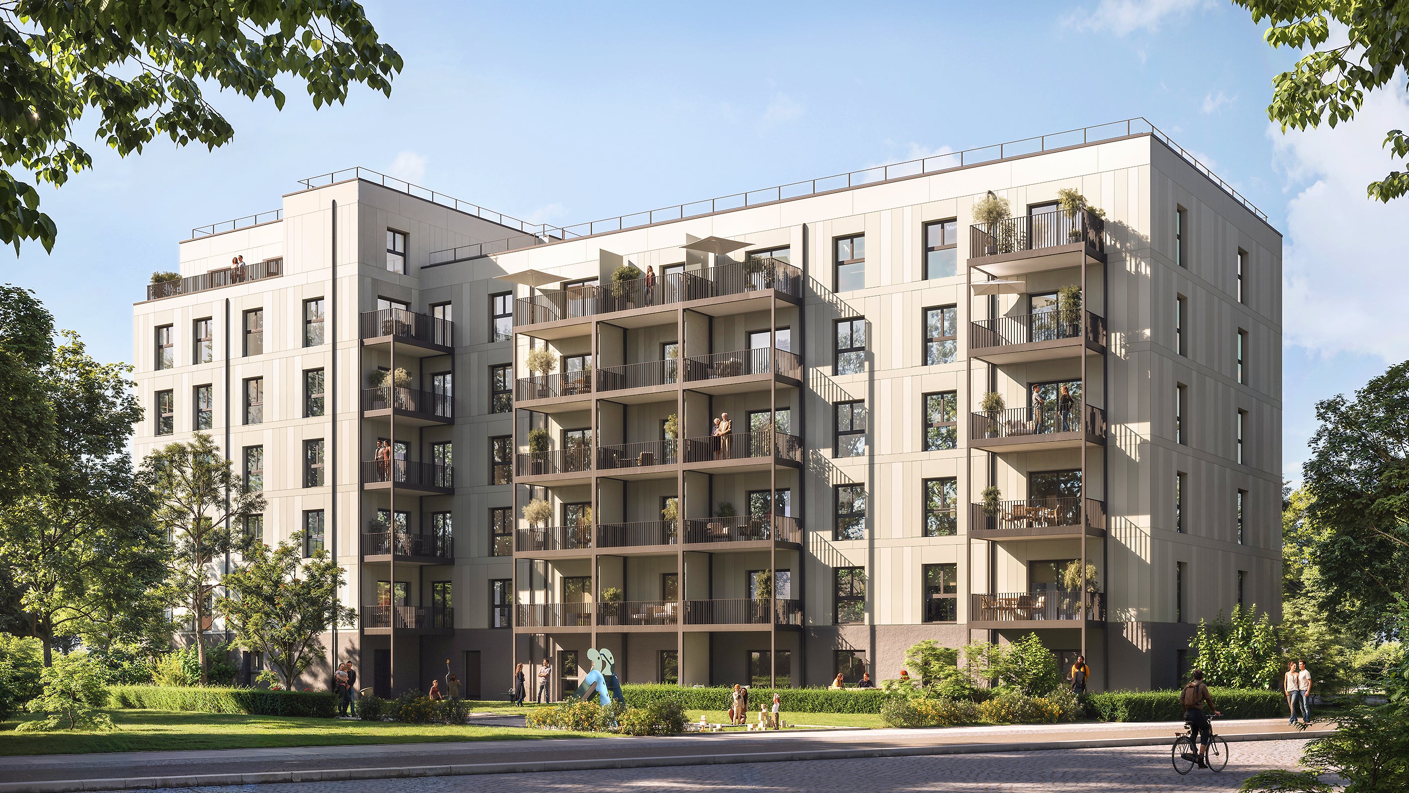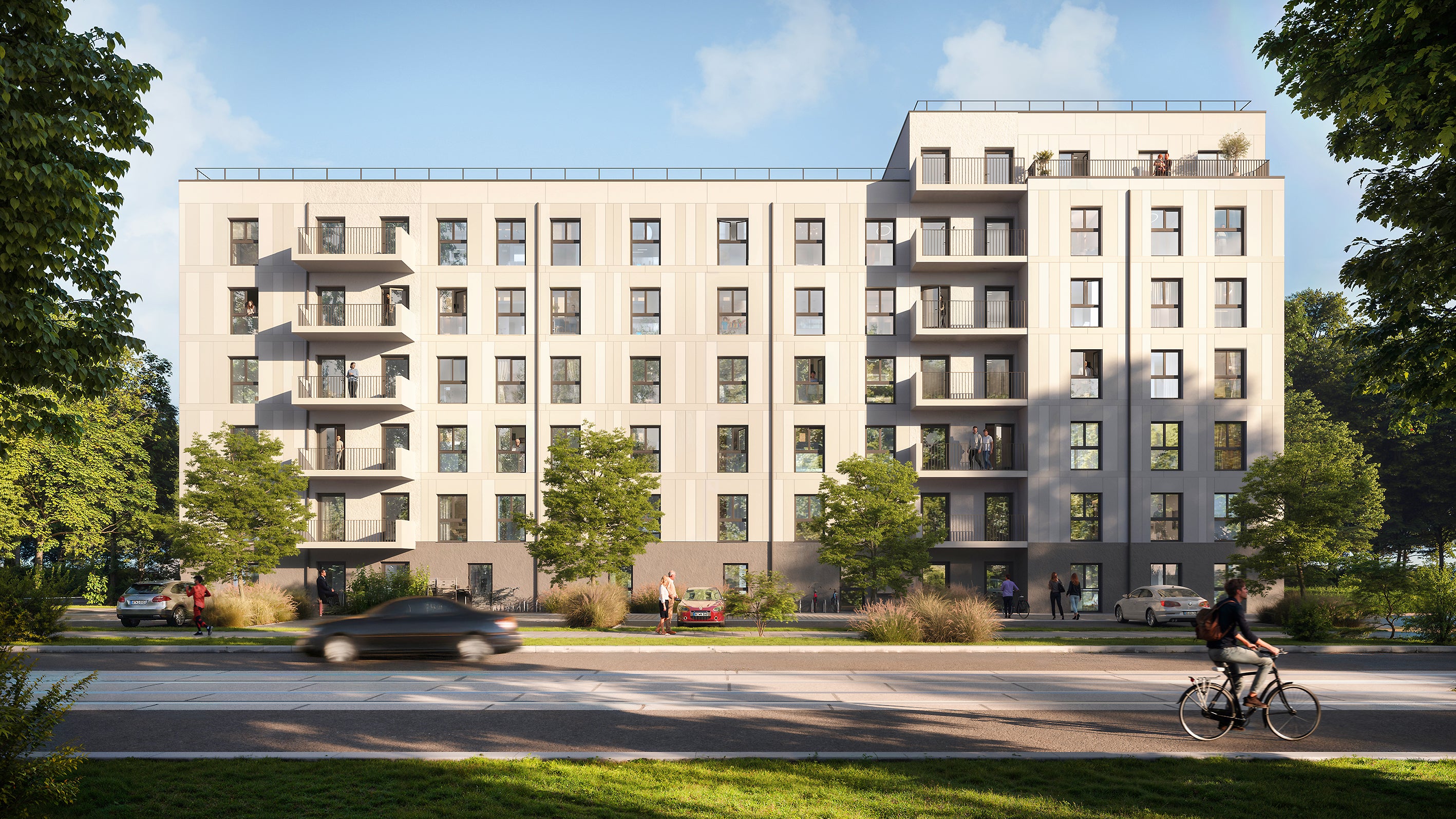 Für das innovative BUWOG-Projekt in der Blasewitzer Straße in Dresden wird eine vormals als Parkplatz genutzte Fläche umgenutzt für neuen Wohnraum. Hier auf dem Grundstück realisiert die BUWOG eine qualitätsvolle Nachverdichtung umliegender Bestandsbebauung und schafft 41 neue Wohnungen mit einer Bruttogeschossfläche von rund 5.000 Quadratmetern. Die Wohnungsgrößen umfassen einen breiten Mix mit 3, 4 und 5 Zimmern, orientiert am Wohnbedarf von vor allem Paaren und Familien. Sämtliche Wohneinheiten werden durch die BUWOG als Mietwohnungen konzipiert und verfügen über Balkon oder Terrasse sowie den Zugang zum grün gestalteten Wohnumfeld mit Spielbereich und Aufenthaltsqualitäten.